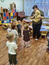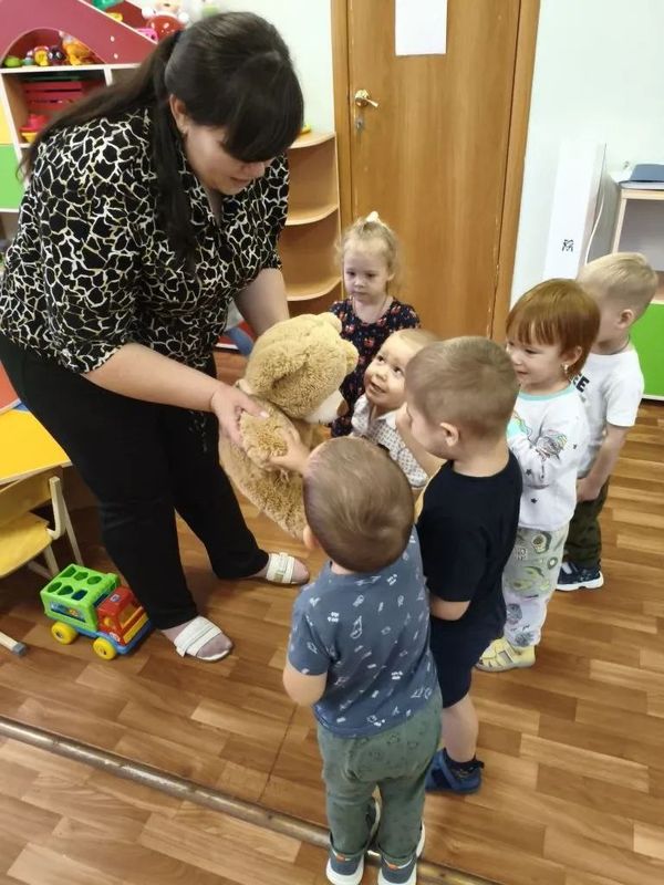 Плюшевый мишка является одним из самых популярных игрушек для детей. Трудно представить ребенка, у которого бы в детстве не было своего любимого плюшевого мишки. Мягкий плюшевый мишка - одна из самых распространенных по всему миру игрушек, которая занимает особое место в сердцах детей и взрослых. Малыши с радостью встретили плюшевого друга, который заглянул к нам в гости и познакомились с ним. Дети с удовольствием играли в подвижные игры "У медведя во бору", "Медведь и пчелы", что принесло много радости и смеха. Затем танцевали под песню "Мишка косолапый", имитируя походку медведя. В завершении дня малыши раскрасили любимое лакомство медведя. День прошёл весело и задорно. Будем с нетерпением ждать новой встречи с плюшевым мишкой!