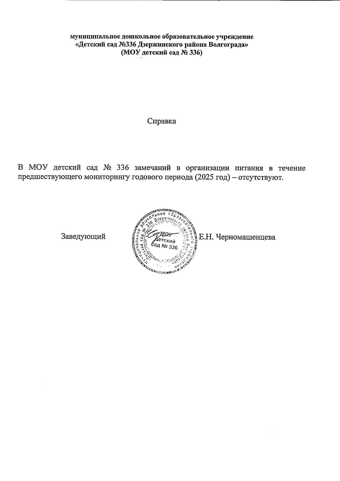 Справка об отсутствии замечаний по питанию за 2025